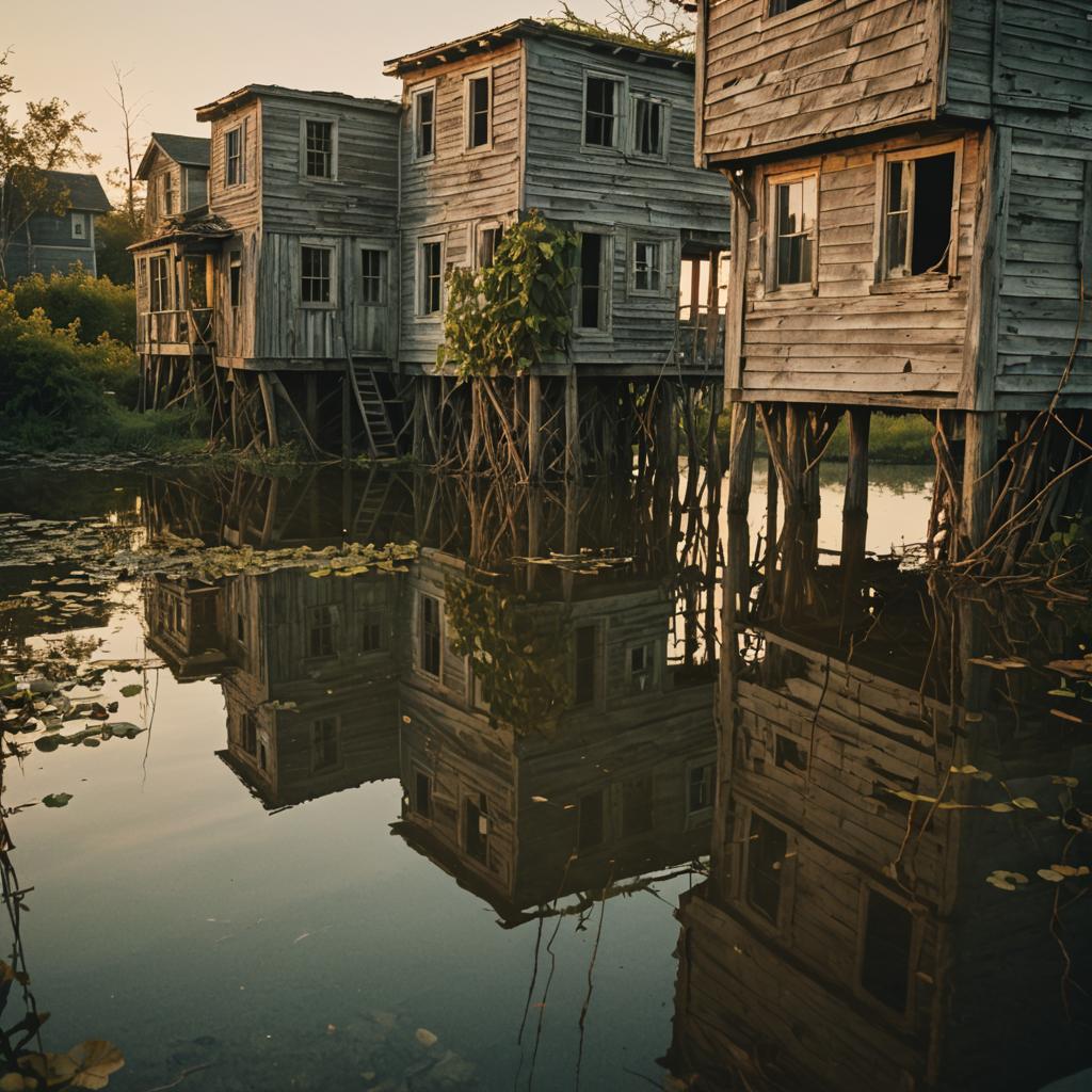 Fauxpool’s architectural view consists of precarious stilted structures, most of them in varying degrees of dilapidation. A unique feature of the landscape are the ancient Supine trees whose canopies shroud most of the city in perpetual shade. A boon in hotter times, but a feature that many visitors and residents describe as a “cover of gloom”.