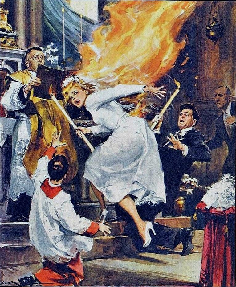 The themes of Molino’s work consist of anything related to disasters – fire, water, falling from cliffs, planes, boats, buildings, and so on.